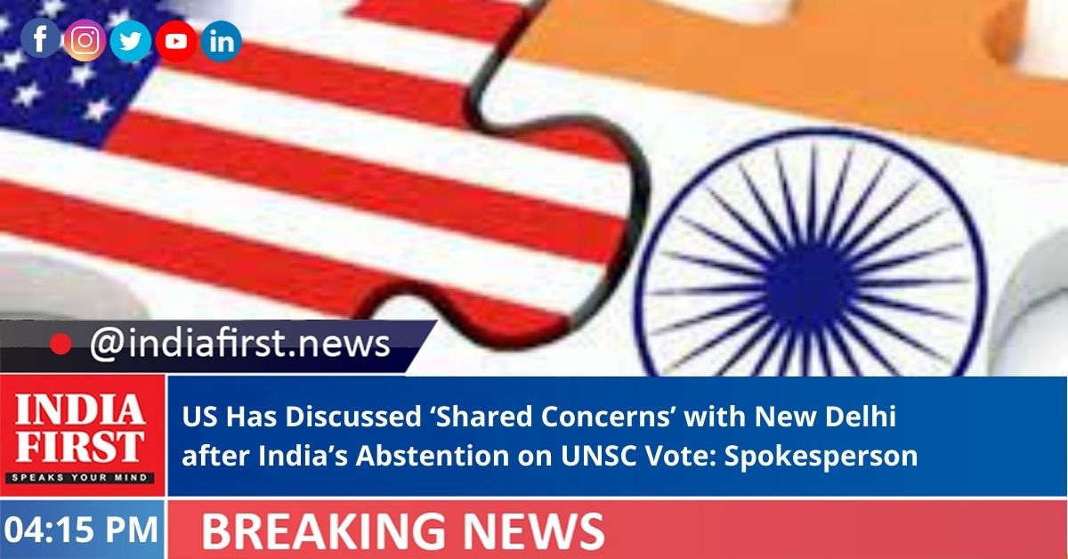 The US has discussed its concerns with India in the aftermath of its abstaining on the United Nations Security Council vote censuring Russia for its invasion of Ukraine and has regular engagement with it, according to State Department Spokesperson Ned Price.