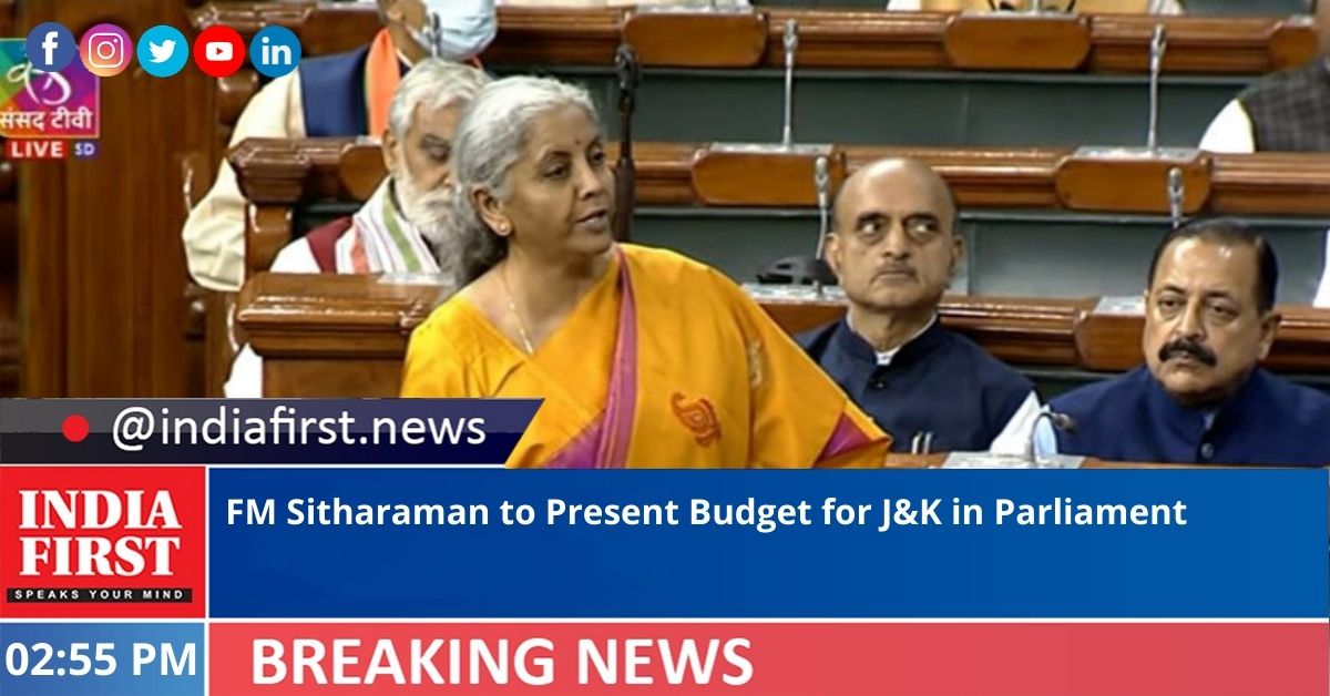 Union Finance Minister Nirmala Sitharaman will present the Budget of Union Territory of Jammu and Kashmir in Parliament today.