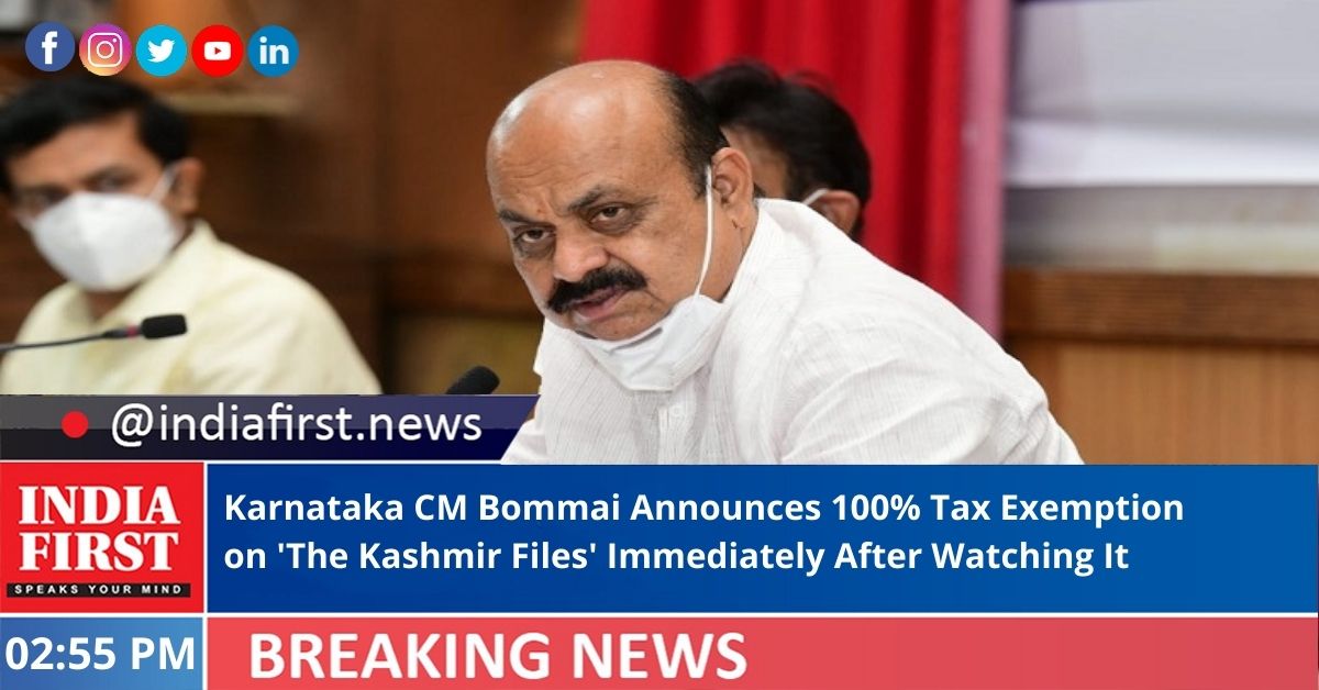 The Karnataka government has decided to provide hundred per cent tax exemption on Hindi feature film ‘The Kashmir Files’. Chief Minister Basavaraj Bommai yesterday took time off to watch the movie at a theatre here.