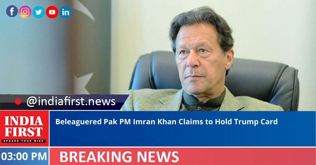 Pakistan Prime Minister Imran Khan said yesterday that he still holds the trump card on the situation that emerged after the opposition submitted a no-confidence motion against him, and when he reveals the card the opposition leaders will be surprised, Samaa TV reported.