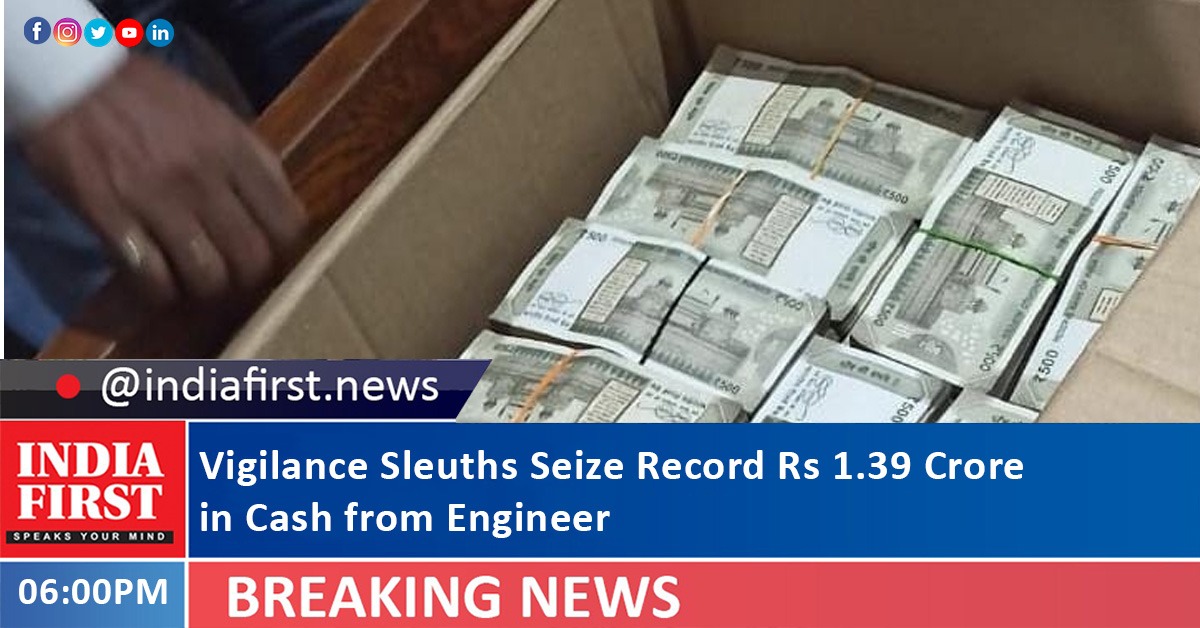 The Odisha vigilance department has seized a record amount of Rs 1.39 crore in cash during raids on properties of Ashis Kumar Dash, a superintending engineer of rural works, Malkangiri, officials said yesterday.