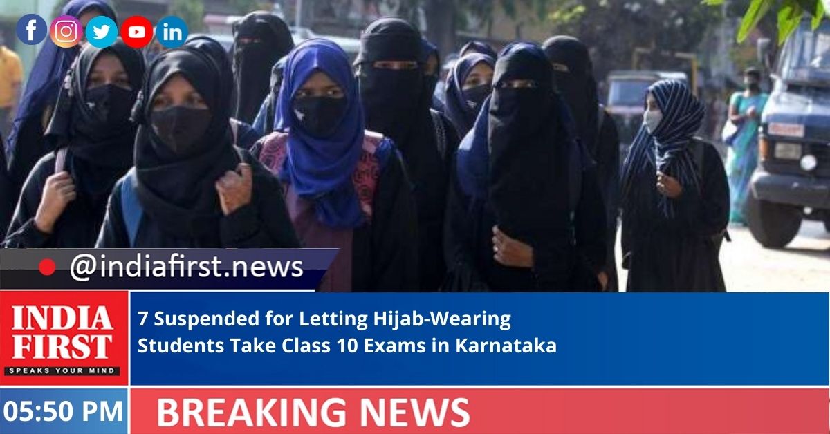 The Karnataka Education Department has suspended seven teachers including two superintendents for allowing hijab clad students to take SSLC (class 10) exams in Gadag district.