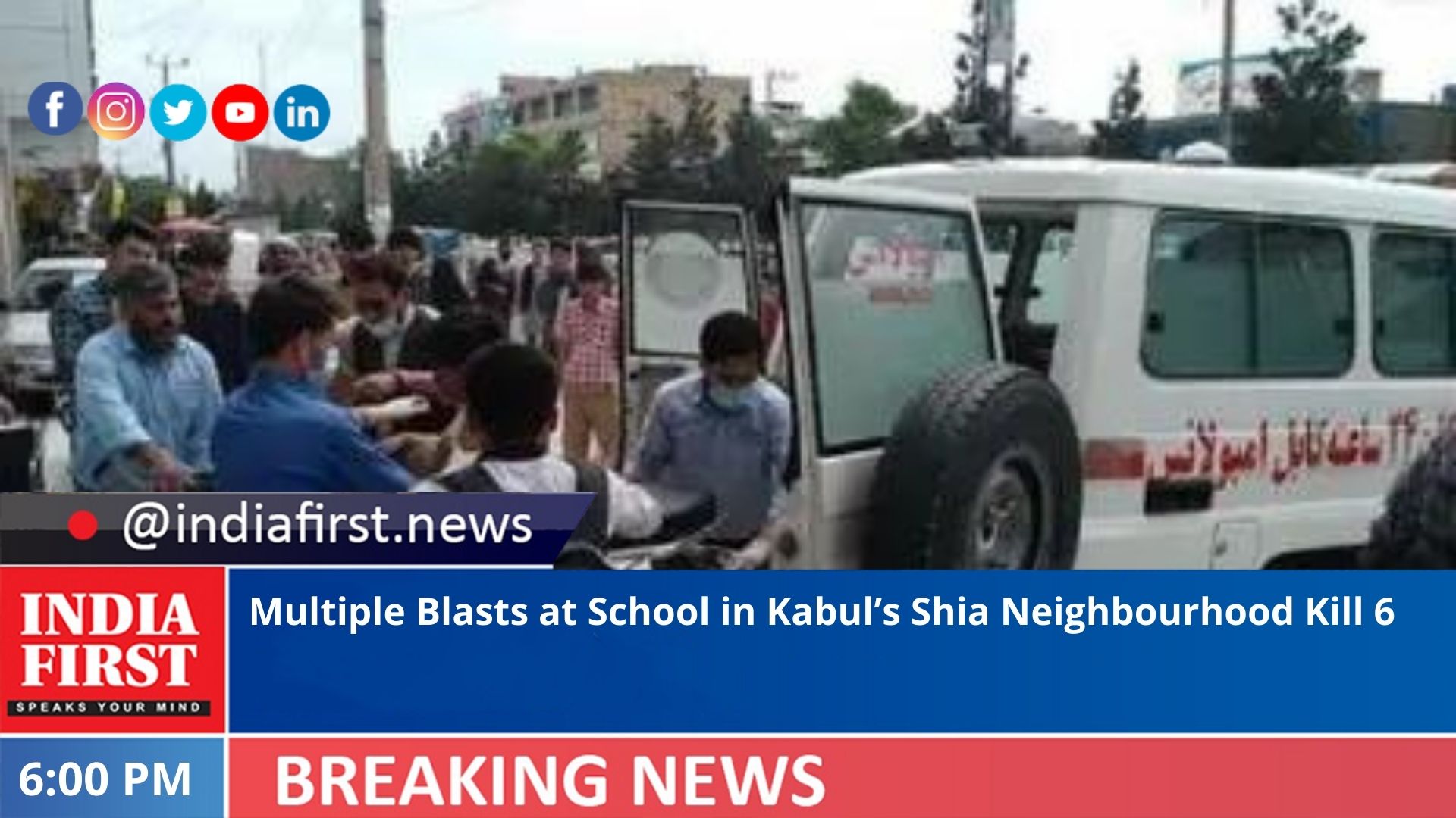 At least six people were killed and 11 wounded in three blasts that rocked a boys’ school in a Shi’ite Hazara neighbourhood of Kabul today, police in the Afghan capital said, RFE/RL reported.