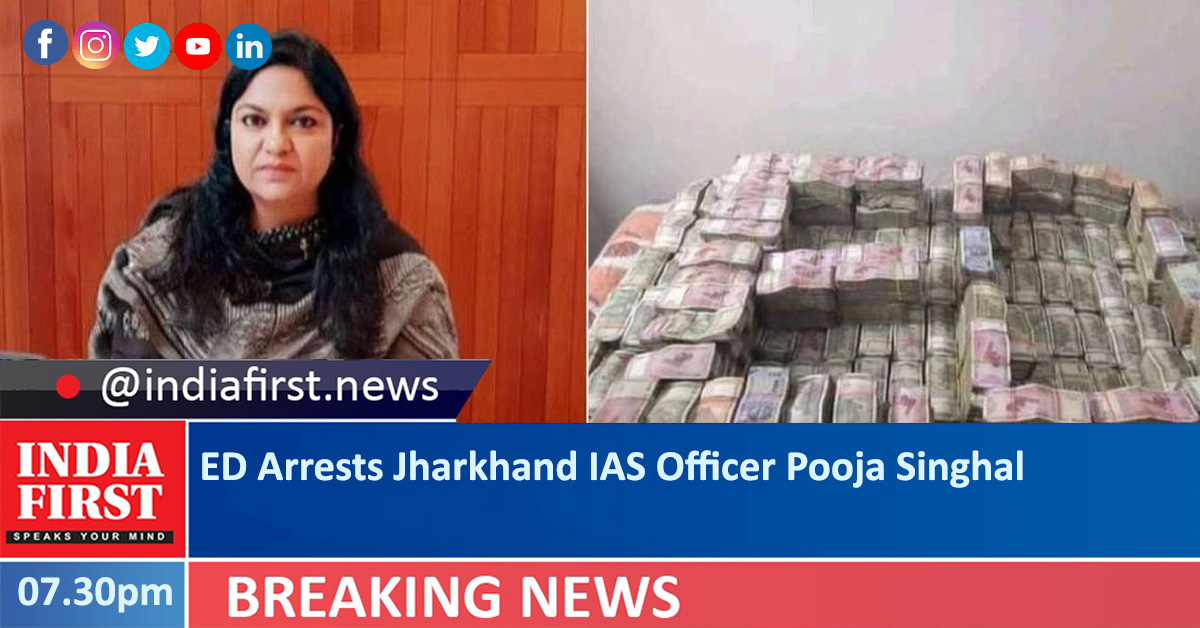 IAS officer and Jharkhand Mines Secretary Pooja Singhal was today arrested by the Enforcement Directorate (ED) after her second day of questioning in connection with the ongoing probe of Prevention of Money Laundering case pertaining to alleged embezzelment of MNREGS funds.