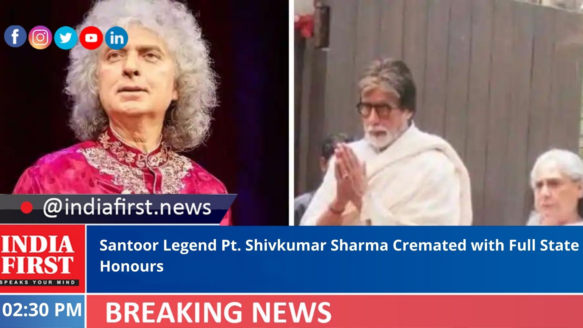 Earlier, a large number of prominent personalities took Pt. Sharma’s final ‘darshan’ at his residence in Juhu, where his mortal remains were kept for three hours.