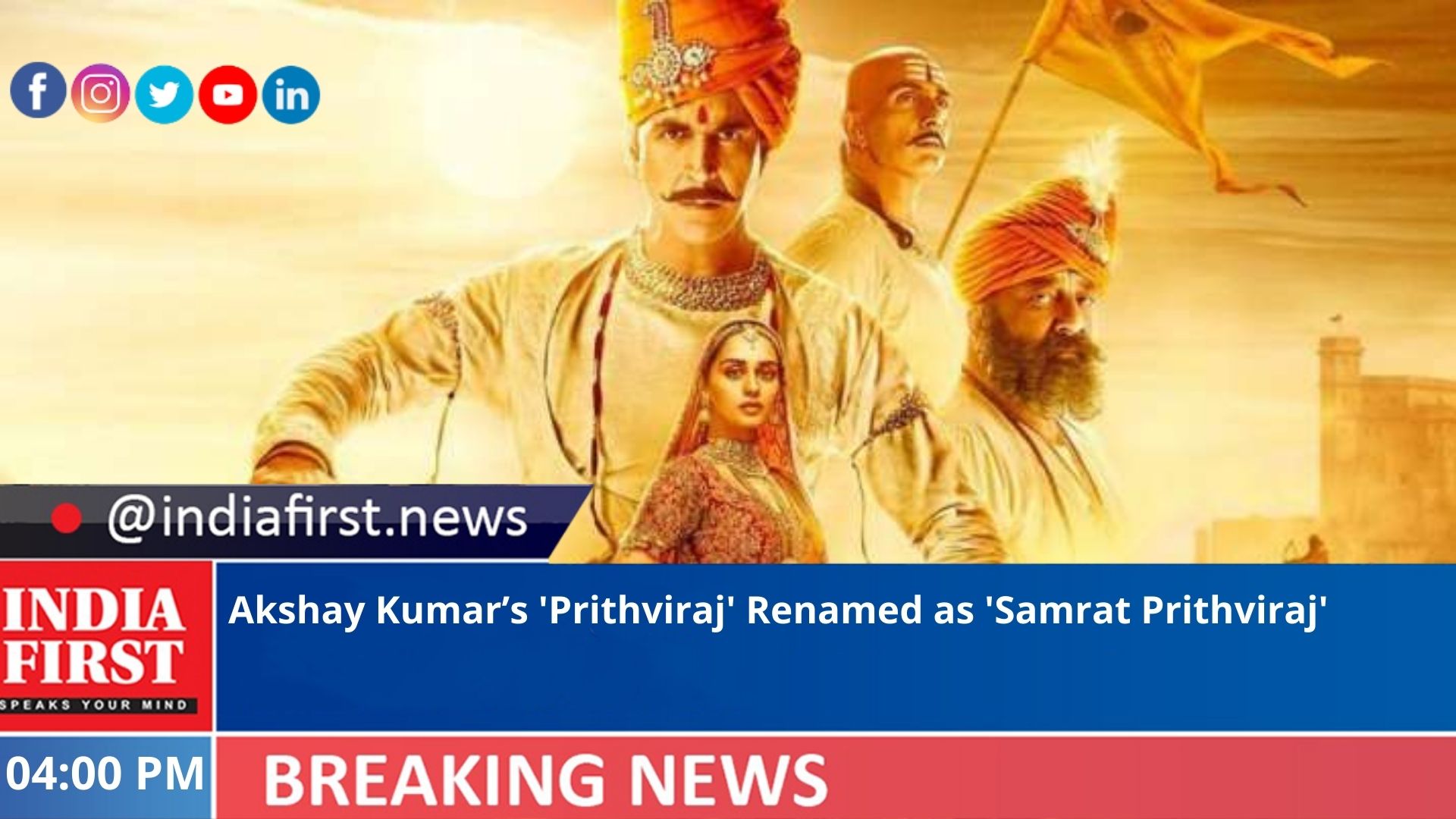 The title of Bollywood star Akshay Kumar’s upcoming film ‘Prithviraj’ has been changed the film is now called ‘Samrat Prithviraj’, according to a letter issued by Yash Raj Films.