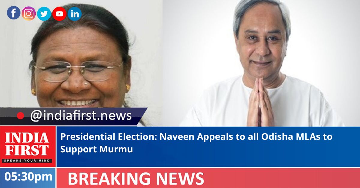 Odisha Chief Minister and BJD President Naveen Patnaik on Wednesday appealed to all MLAs in the state to support Draupadi Murmu, who has been named as the NDA candidate in the presidential election.