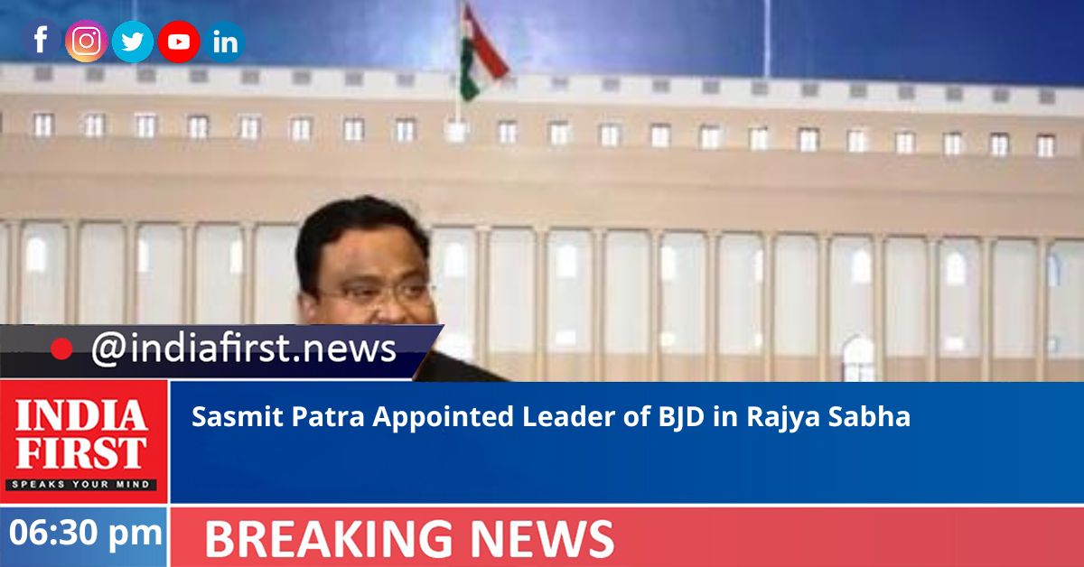 BJD President and Odisha Chief Minister Naveen Patnaik on Friday appointed Rajya Sabha member Sasmit Patra as the party leader in the upper house of Parliament.