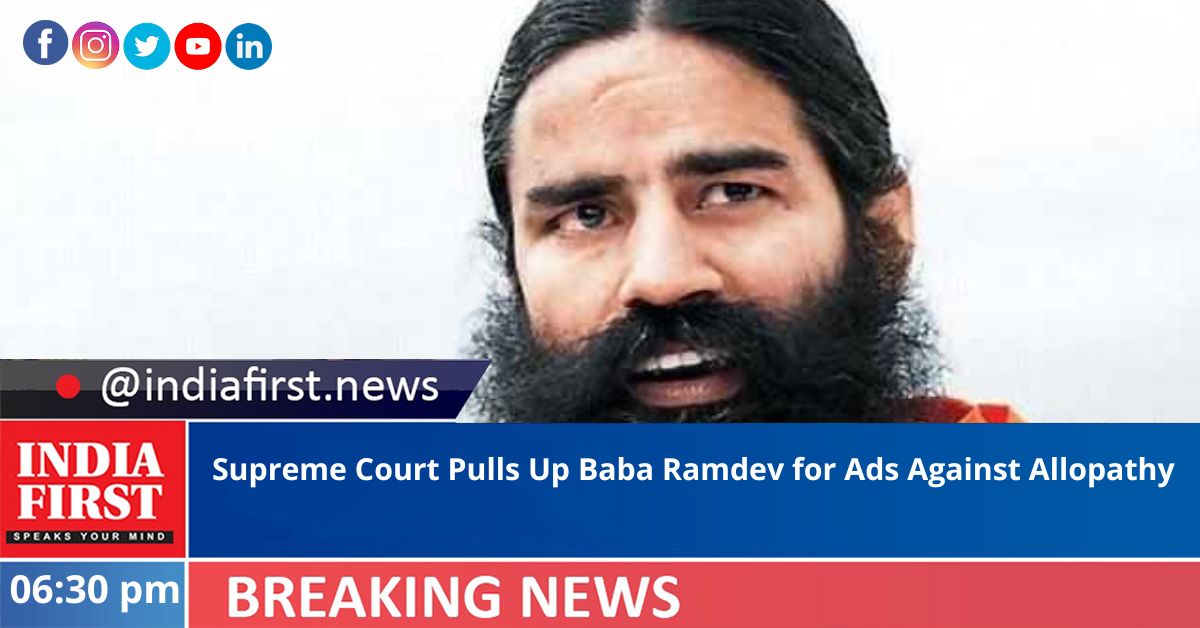 The Supreme Court on Tuesday pulled up Baba Ramdev in connection with advertisements attempting to discredit allopathy and its practicing doctors amid the Covid-19 pandemic, and asked the Centre to restrain him.