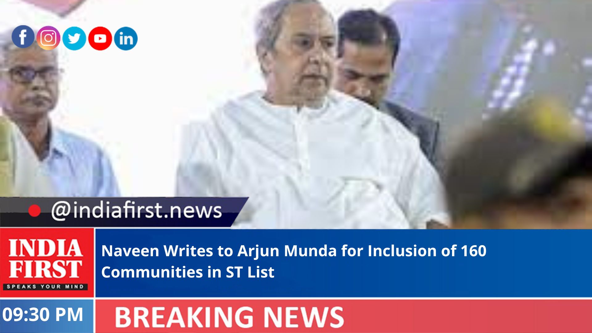 Odisha Chief Minister Naveen Patnaik on Saturday wrote to Union Tribal Affairs Minister Arjun Munda seeking inclusion of 160 communities in the ST list of the state.