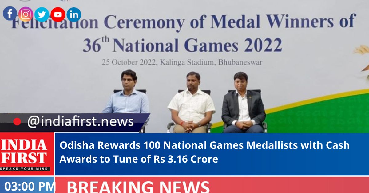 Odisha government on Tuesday felicitated about 100 sportspersons of state with special cash awards totalling Rs 3.16 crore for their outstanding performance at the 36 National Games 2022, Gujarat.