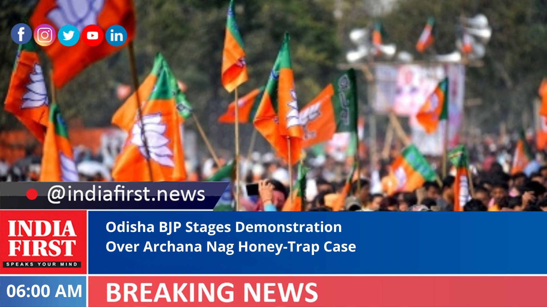Hundreds of Odisha BJP leaders and workers on Monday staged a protest in Bhubaneswar, demanding action against BJD leaders and Ministers, who are allegedly involved in Archana Nag honey-trap case and the death of BJD Zilla Parishad member Dharmendra Sahoo.