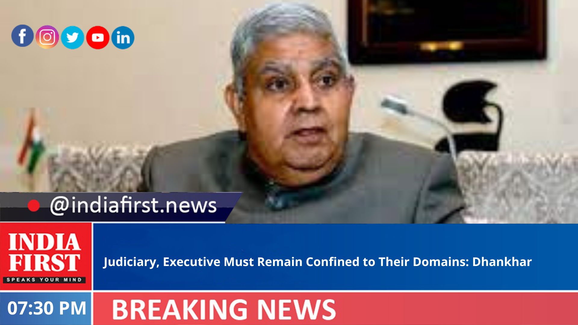 Vice President Jagdeep Dhankhar on Wednesday reiterated that the power of Parliament to amend the constitution and deal with legislation is not subject to any other authority and all constitutional institutions — the judiciary, the executive and the legislature — are required to confine to their respective domains and conform to the highest standard of propriety and decorum.