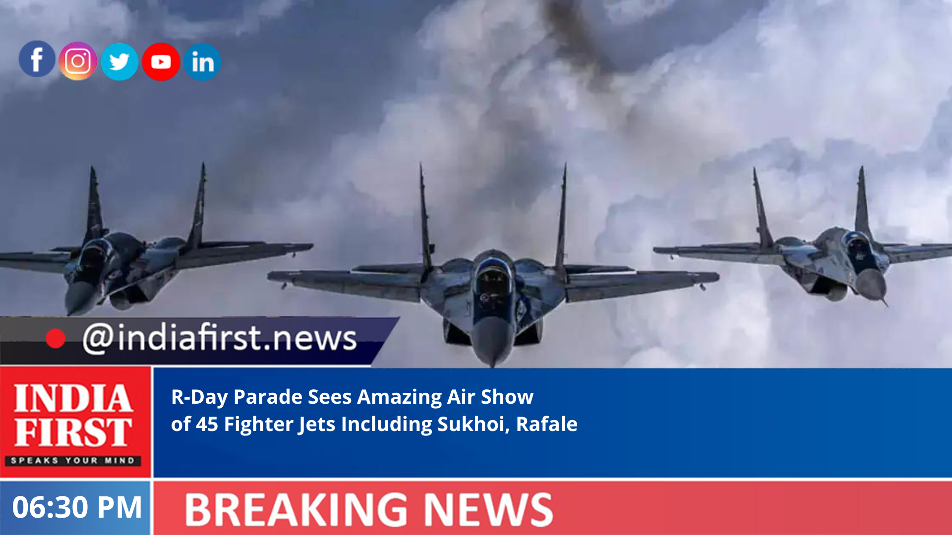 The fighter jets Rafale, Sukhoi, MiG displayed various formations including Baj, Prachanda, Tiranga, Tangail, Vajrang, Garuda, Bhima, Amrit and Trishul over the Kartavya path which was witnessed around 65,000 attendees.