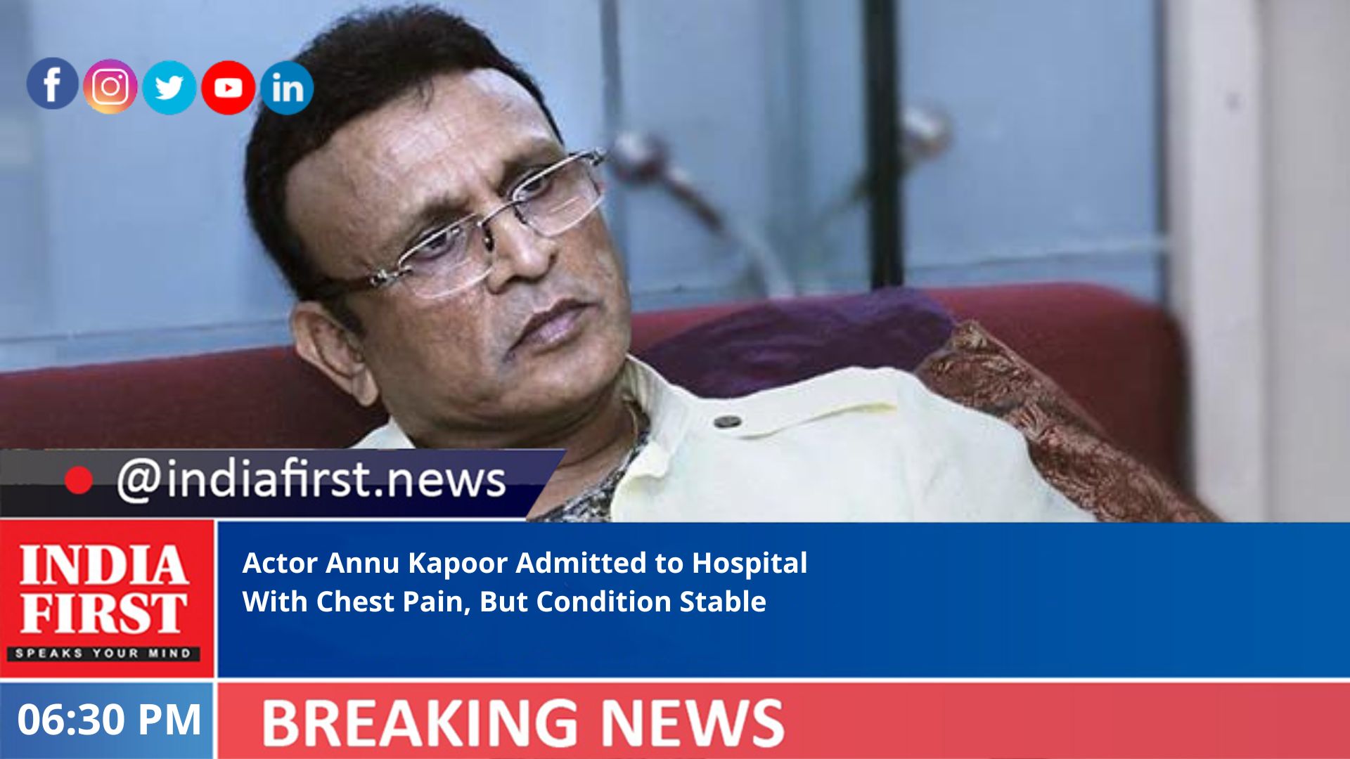 Dr. Ajay Swaroop, Chairman (Board of Management) Sir Ganga Ram Hospital, said: “Annu Kapoor was admitted for chest problems. He is admitted under Dr. Sushant Wattal in cardiology. He is currently stable and recovering.”