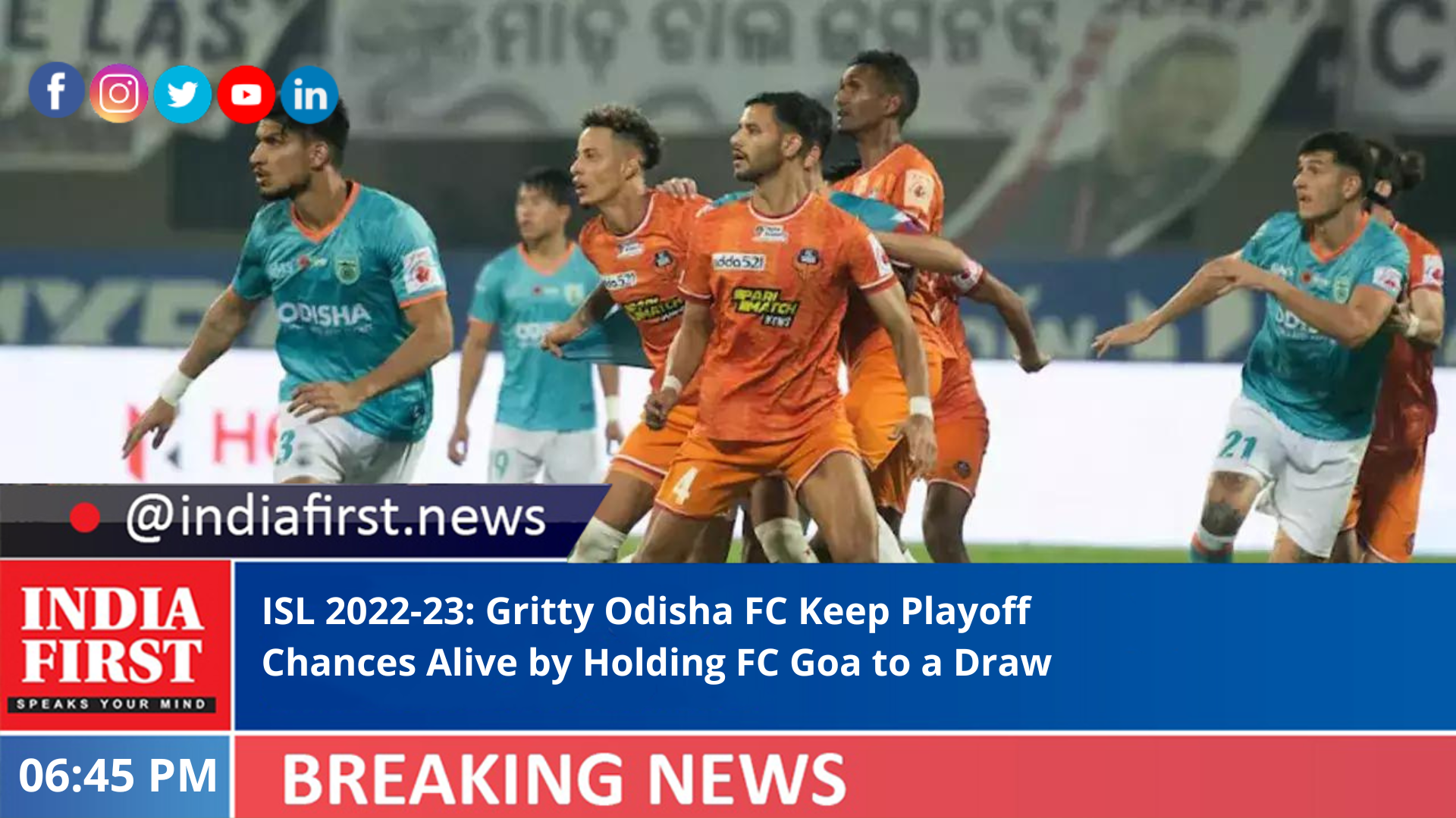 The result put Odisha FC level on matches with Bengaluru FC, but a point behind sixth place, while FC Goa remain in fourth. Odisha FC stay at home to face Hyderabad FC on Friday, while FC Goa head back home to face Mumbai City FC on Saturday.