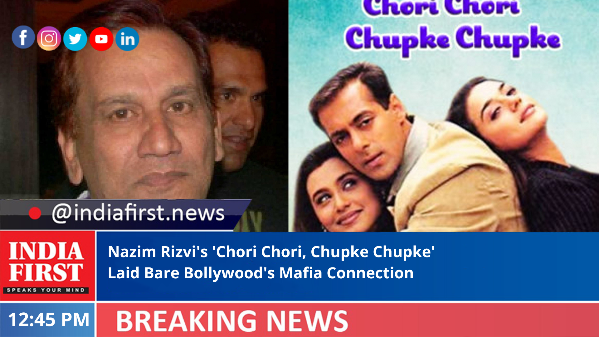 Controversial film producer Nazim Hassan Rizvi – whose hit film “Chori Chori, Chupke Chupke” (2001) blew the lid off the Bollywood-Mafia nexus – passed away at a private hospital here, industry sources said on Tuesday.
