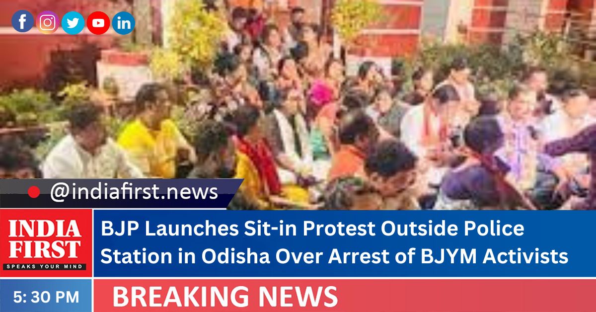 Odisha BJP leaders and workers launched a dharna (sit-in protest) in outside the Capital police station here in protest of the arrest of 22 Bharatiya Janata Yuva Morcha (BJYM) activists including state president Irasish Acharya.
