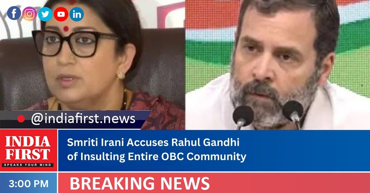 Union Minister Smriti Irani on Tuesday slammed Congress leader Rahul Gandhi by saying that in an attempt to insult Prime Minister Narendra Modi, he also insulted the entire OBC community.