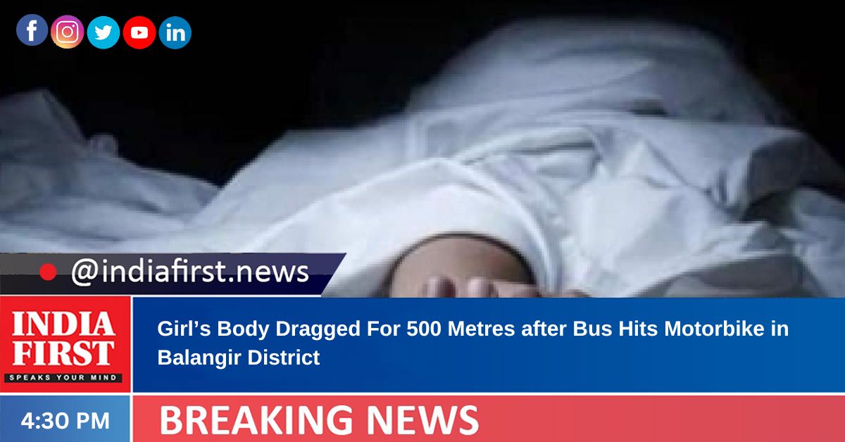 A speeding private bus dragged the body of a girl, after hitting the bike she was riding with her father and sister for about half-a-km near Gaintala in Odisha’s Balangir district on Tuesday, police said.