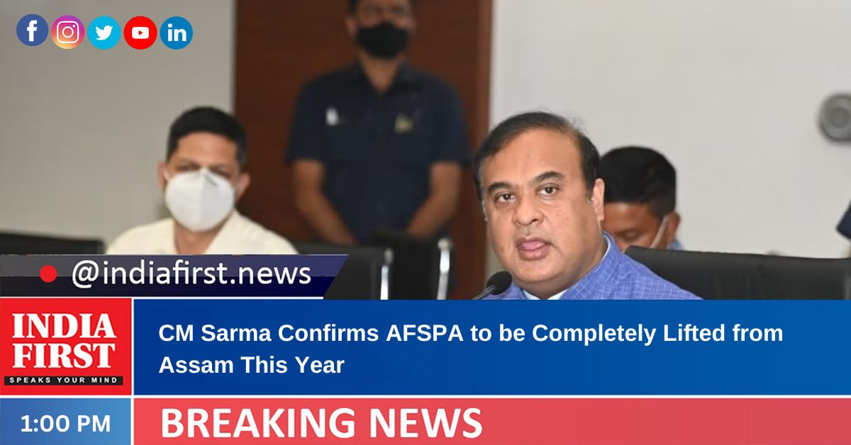 “With the continuous improvement of the situation in the state, the AFSPA will likely be lifted from the entire state by the end of this year. In such a situation, Assam Police battalions would be empowered to replace Central Armed Police Forces (CAPF) other than the number of CAPFs whose presence is mandatory in the state as per law,” he said.