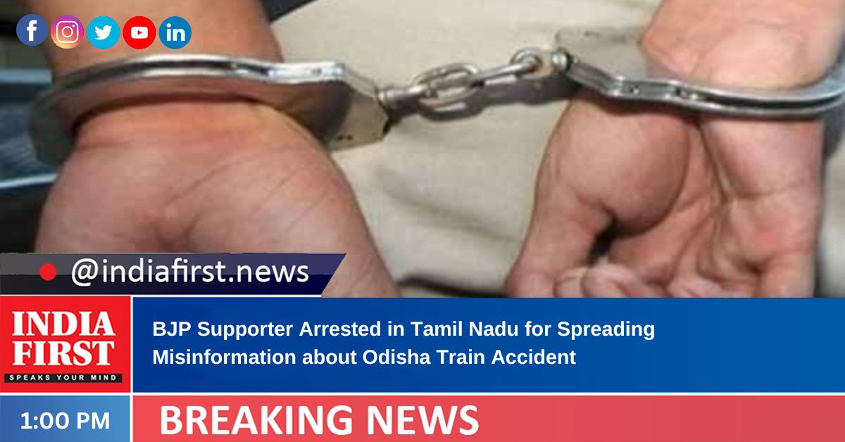 The Tamil Nadu Police on Thursday arrested an advocate, who is a supporter of the BJP, for spreading false information regarding the Odisha train accident.