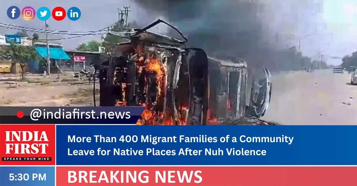 Over 400 panic-struck migrant families have left for their native places after the communal violence in Haryana’s Nuh that had spilled over to Gurugram left them shocked and scared.