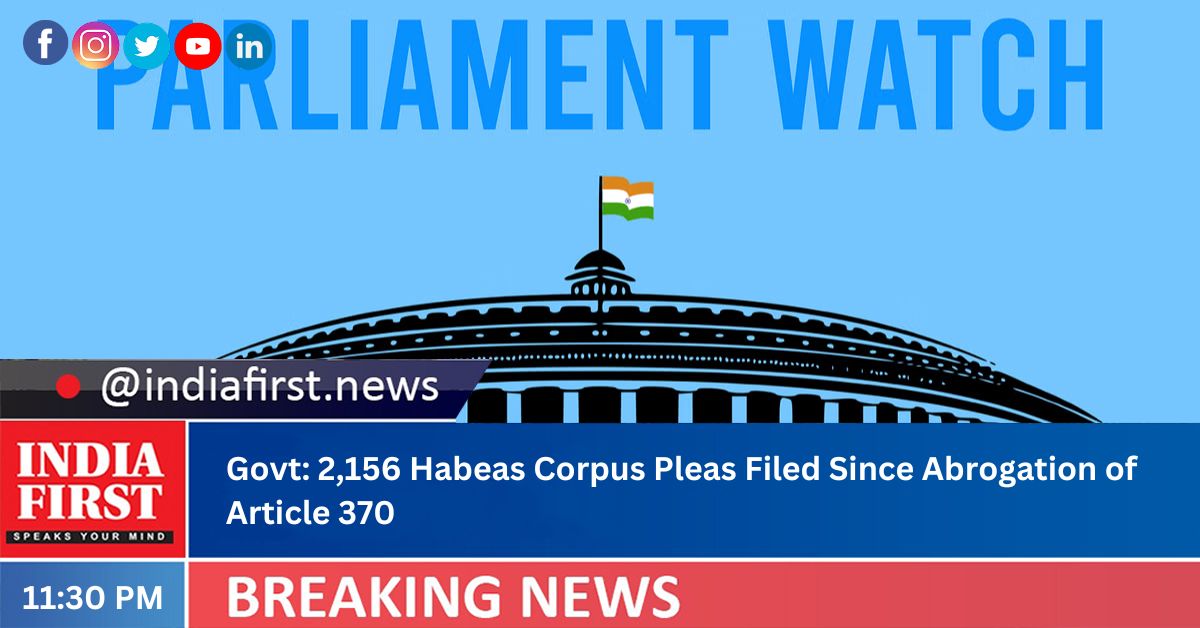 Govt: 2,156 Habeas Corpus Pleas Filed Since Abrogation of Article 370