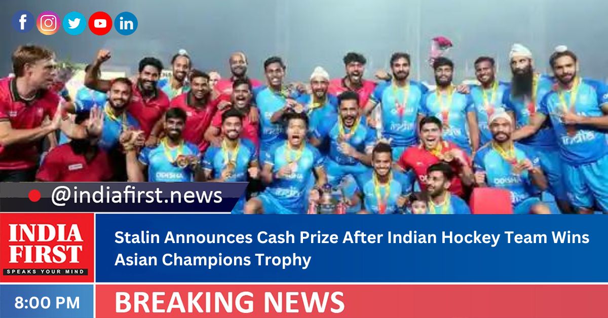 Tamil Nadu Chief Minister M.K. Stalin on Sunday announced a cash prize of Rs 1.10 crore to the Indian hockey team members who defeated the Malaysian team 4-3 in the final of the Asian Champions Trophy in Chennai.
