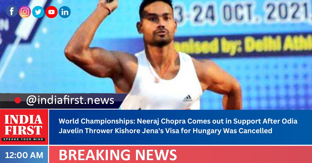 India’s Olympic gold medallist Neeraj Chopra has come out in support of fellow javelin thrower Kishore Kumar Jena, who is likely to miss the World Athletics Championship to be held in Budapest, Hungary, from August 19-27, because the embassy of Hungary in India has cancelled his visa.
