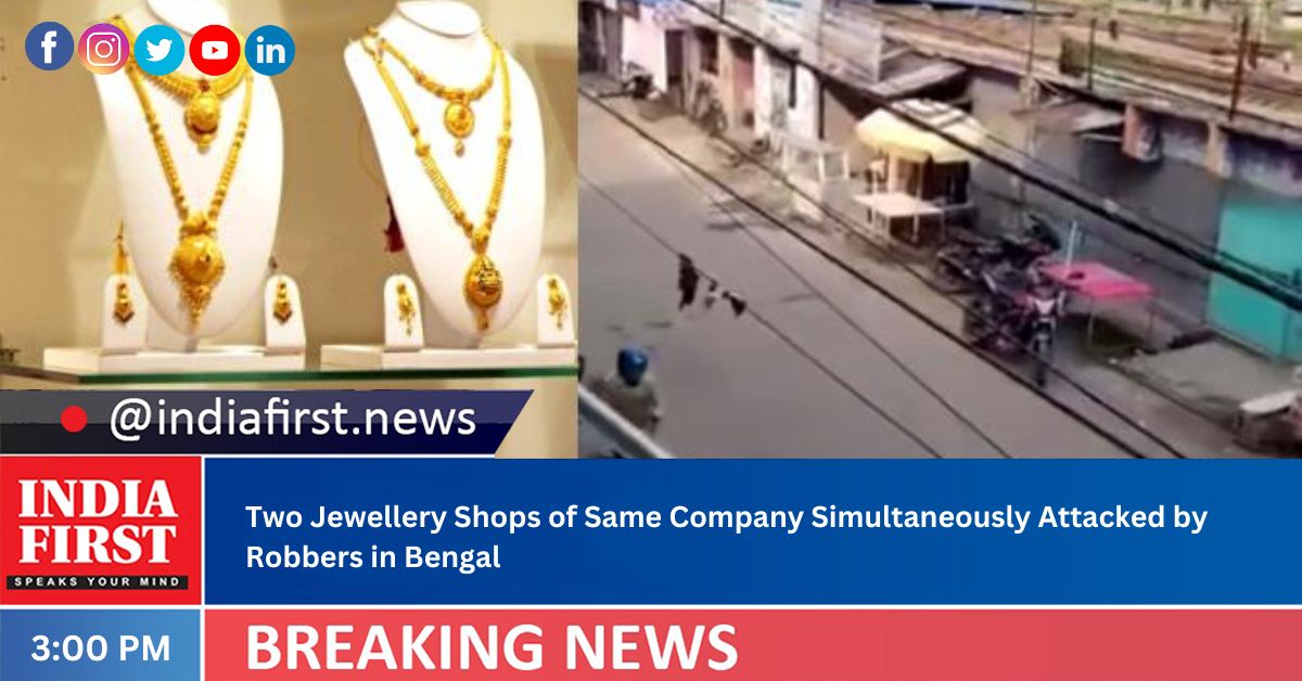 Simultaneous robbery attempts at two gold-jewellery shops of the same retail trading entity was witnessed in two different districts in West Bengal. While one shop was looted, the other witnessed a brief gunfight between the police and robbers.