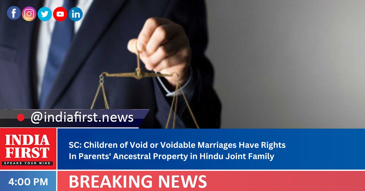The Supreme Court on Friday said that children born from void or voidable marriages can claim rights in their parents’ ancestral property in joint Hindu families following the Mitakshara system of law.