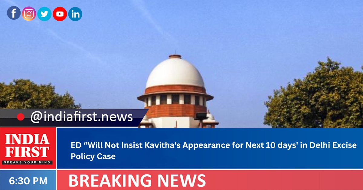 The Enforcement Directorate (ED) on Friday submitted before the Supreme Court that it will not insist BRS MLC K. Kavitha to appear in its national capital office in connection with the ongoing probe into the now-scrapped Delhi excise policy case till September 26.