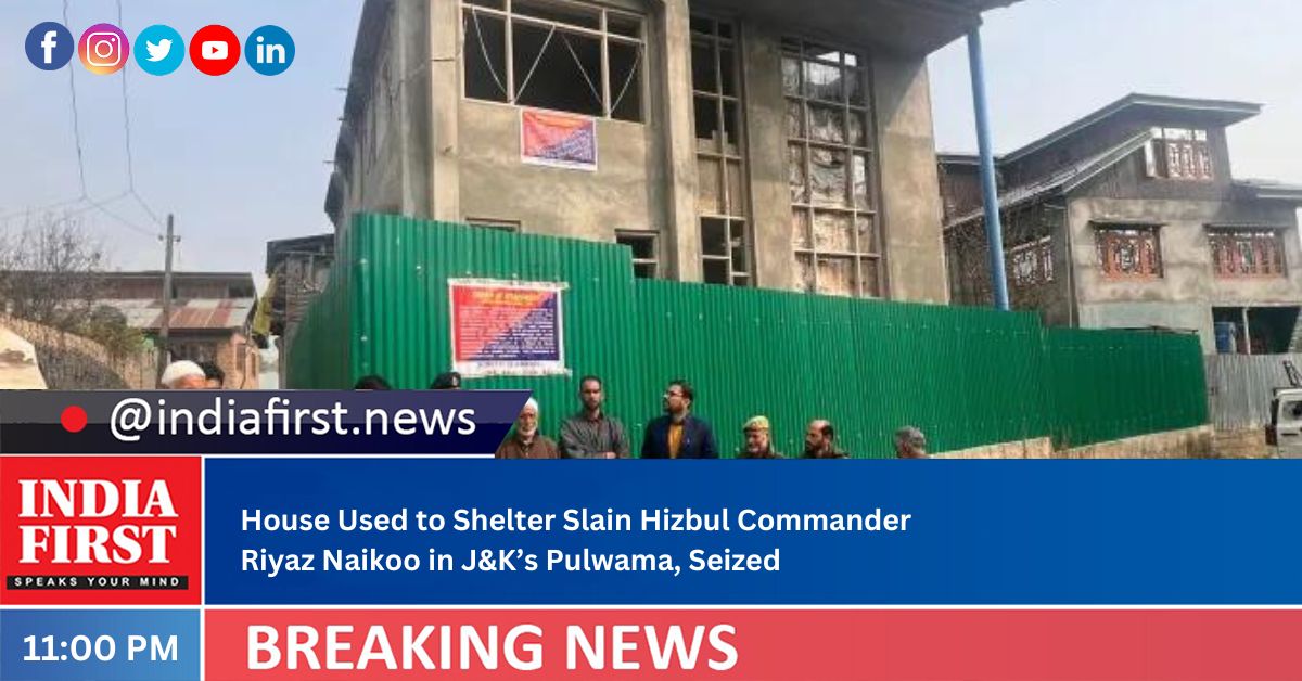 Authorities on Thursday attached a property in J&K’s Pulwama district that was used to shelter the slain Hizbul Mujahideen (HM) commander, Riyaz Naikoo.