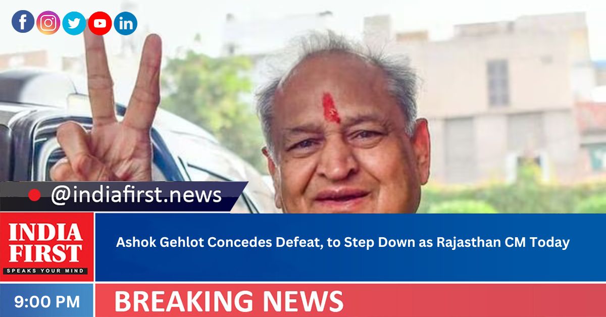 Rajasthan Chief Minister Ashok Gehlot on Sunday accepted the Congress’ defeat in the Assembly elections, and he is expected to meet Governor Kalraj Mishra to resign as CM.