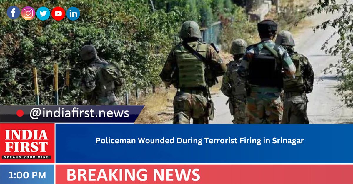 Terrorists fired at and injured a policeman on Saturday in Srinagar’s Bemina area.