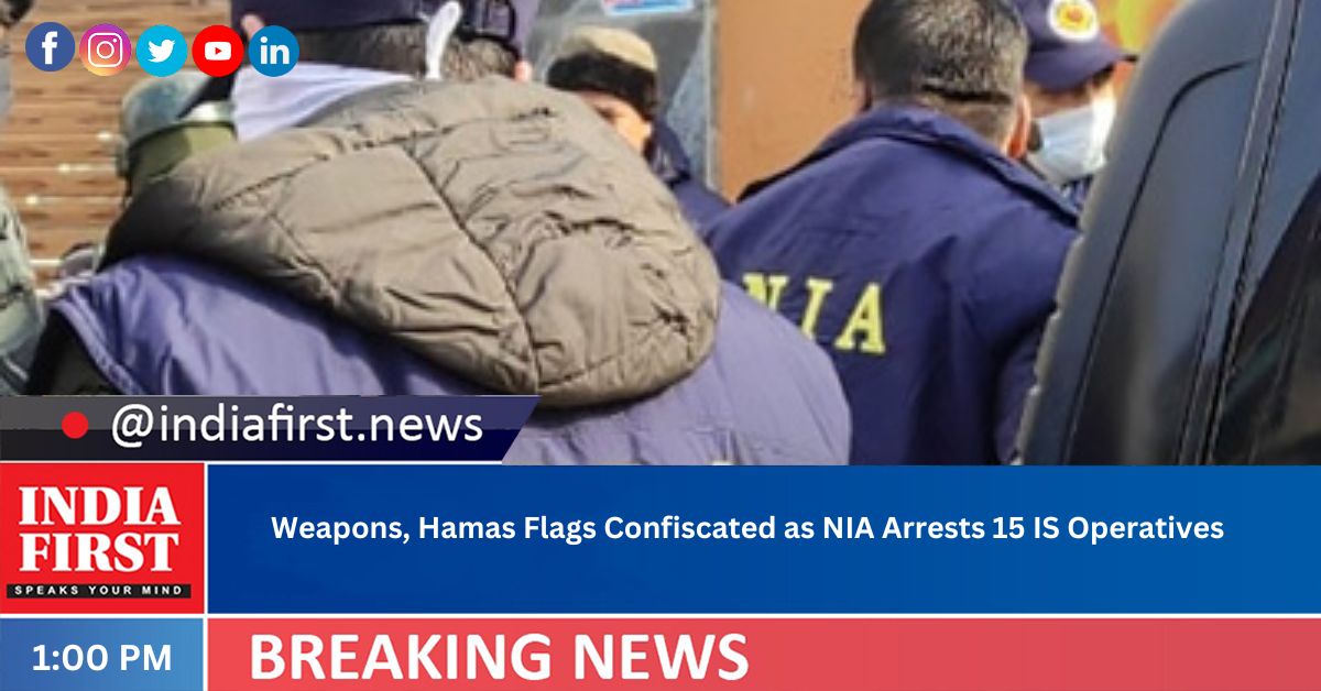 The NIA also recovered over Rs 68 lakh in cash, firearms, sharp-edged weapons, incriminating documents, smartphones, Hamas flags and other digital devices during the raids.