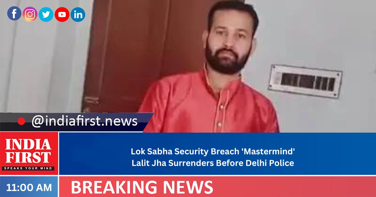 The alleged mastermind behind the Parliament security breach case, Lalit Jha, surrendered before the Delhi Police on Thursday night, officials privy to the probe told IANS over phone.