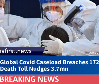 The overall global Covid-19 caseload has topped 172.8 million, while the deaths have surged to more than 3.71 million, according to the Johns Hopkins